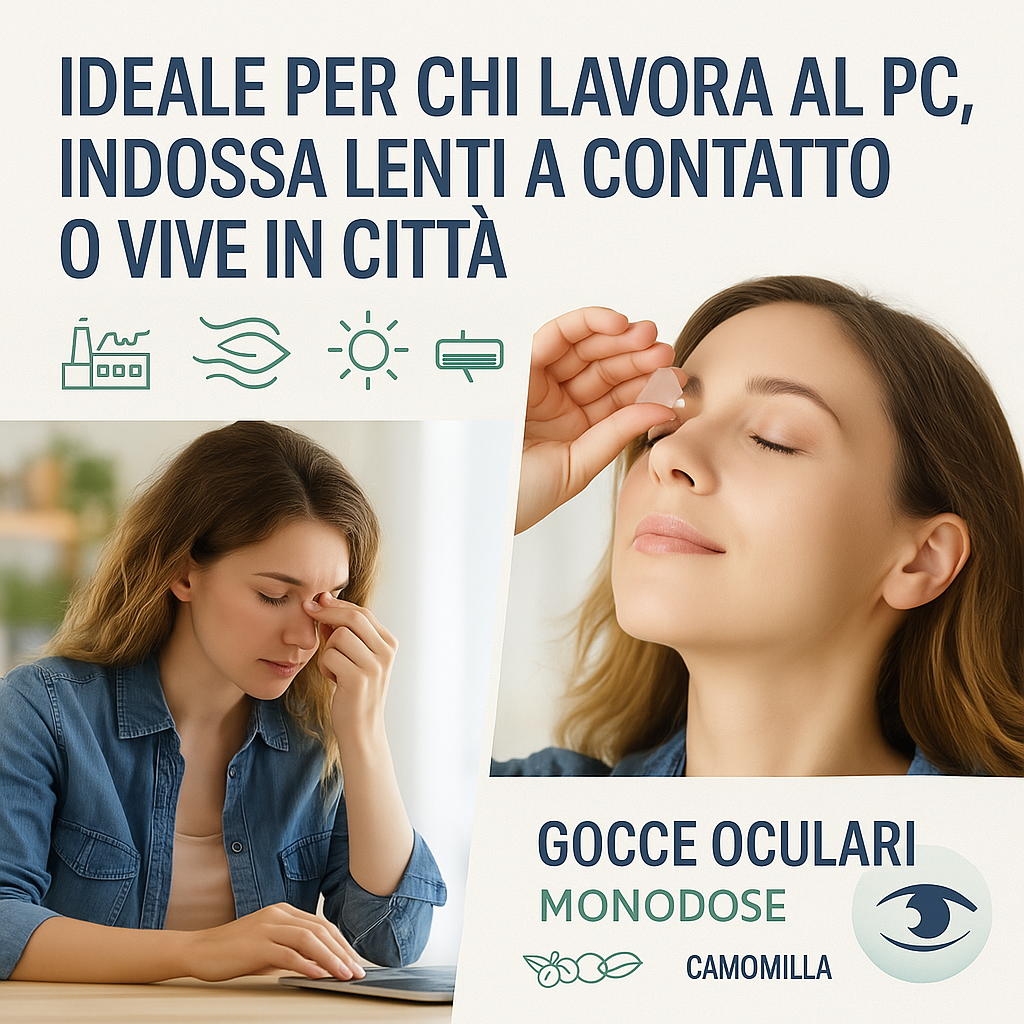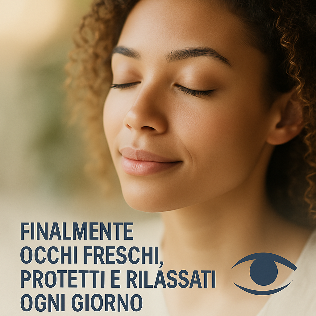 Ideale per occhi sensibili, stanchi o irritati da vento, polvere, uso prolungato di schermi o lenti a contatto.