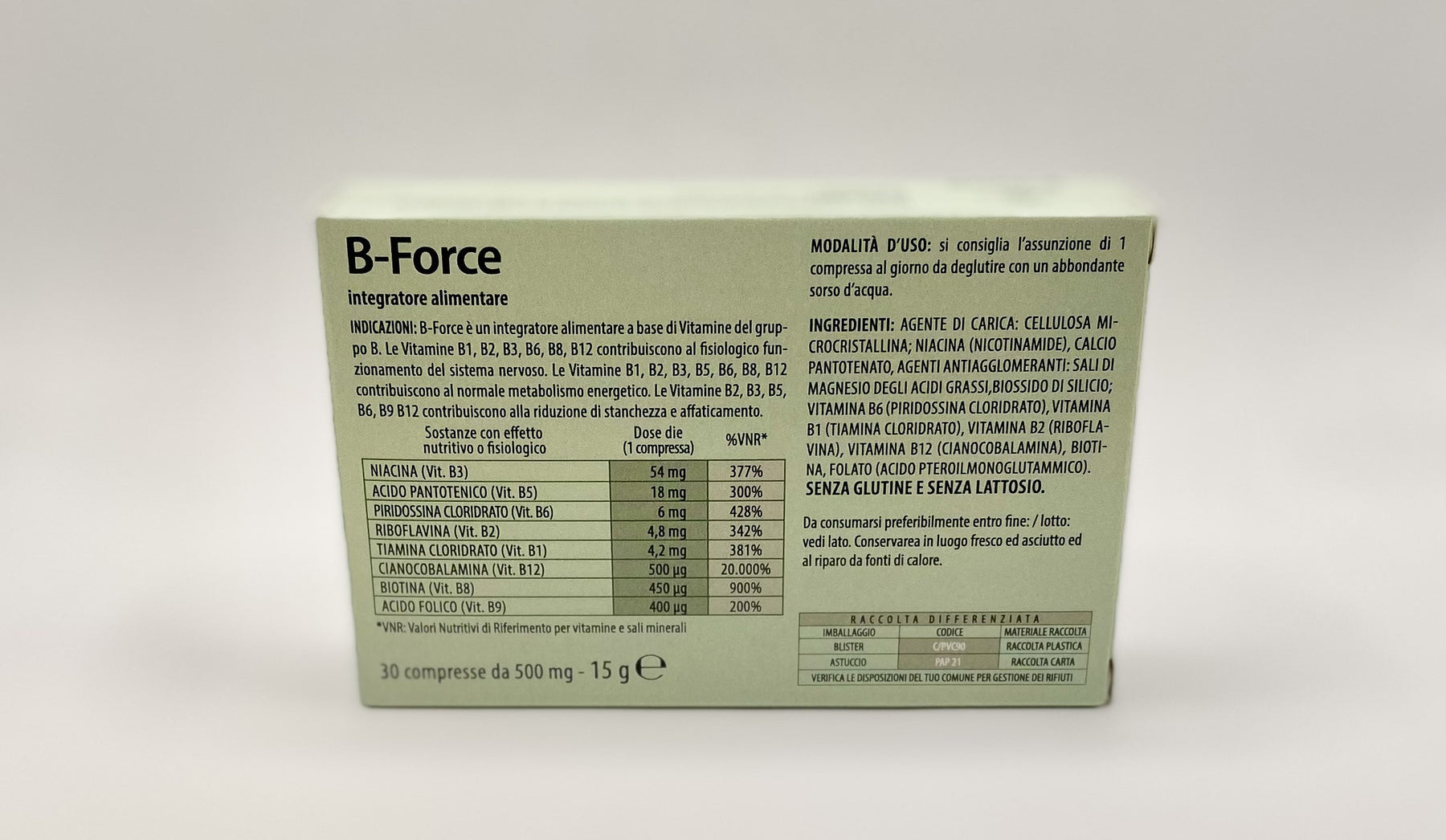Prezzo regolare €19,90 Risparmi €-19,90A base di vitamine del gruppo B ed estratti vegetali (Ribes nero e Guaranà), con Pappa reale ed L-acetilcarnitina. Contiene caffeina. Il Guaranà ha azione tonica in caso di stanchezza fisica e mentale. Le vitamine B6 e B12 contribuiscono al normale metabolismo energetico e alla riduzione della stanchezza e dell’affaticamento e al normale funzionamento del sistema nervoso e del sistema immunitario, l’acido Pantotenico (vitamina B5) contribuisce a prestazioni mentali normali.